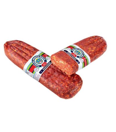 Włoskie pikantne salami dojrzewające z wyselekcjonowanego mięsa wieprzowego i dodatkiem włoskiej ostrej papryczki peperoncino. Specjał z regionu Kalabria. Znakomity dodatek do kanapek, grzanek, tostów, pizzy oraz na deskę wędlin.